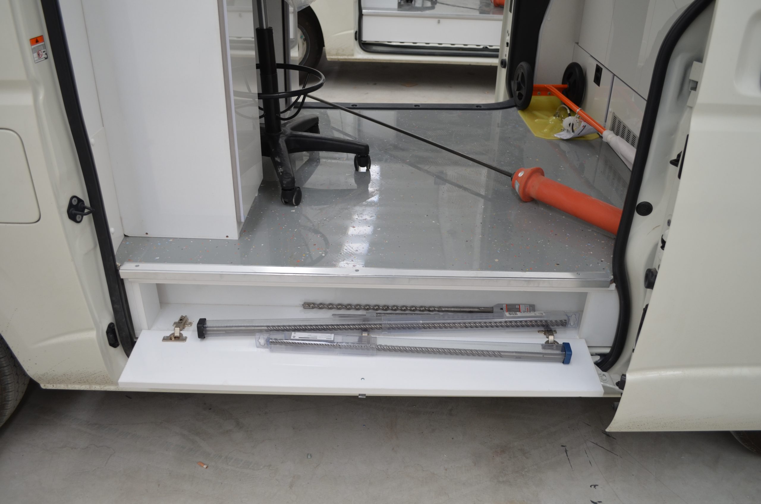 Foor will be covered with epoxy, which is a durable, easy-to-clean surface with no moisture retention. Due to its high resistance to cracking and chipping, epoxy outperforms traditional flooring systems in terms of durability. The floor’s exceptional resilience means it will not be damaged by accidental tool drops or impacts.